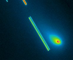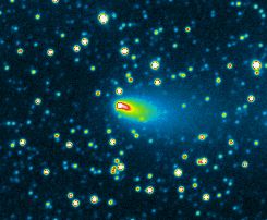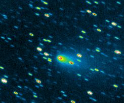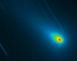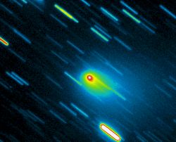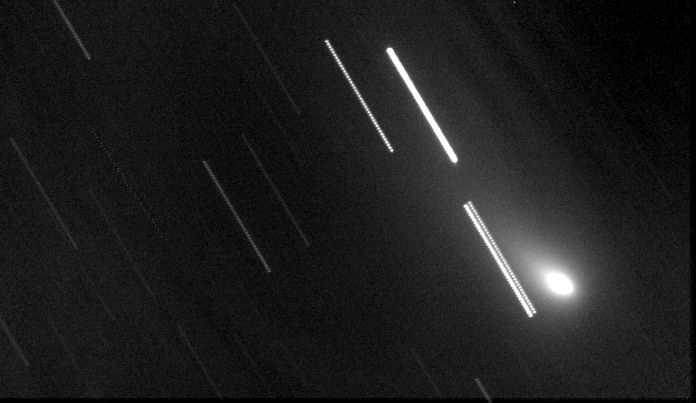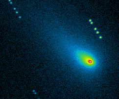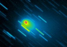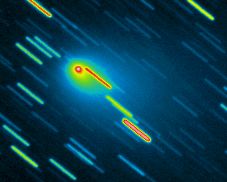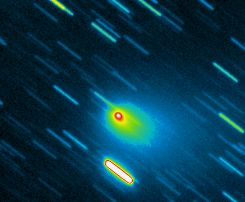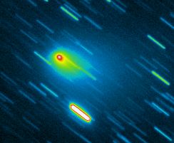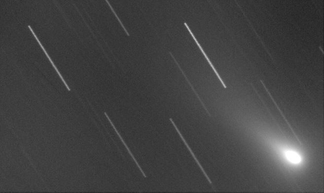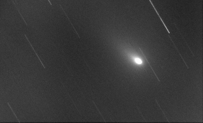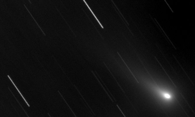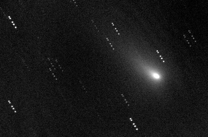 Les images ont été réalisées avec un LX200, de 664 mm de focale et de 200 mm de diamètre. Nous avons ajusté le temps de pose à la vitesse de la comète afin d'avoir une trace des étoiles continue ainsi qu'un maximum de détail dans l'image.